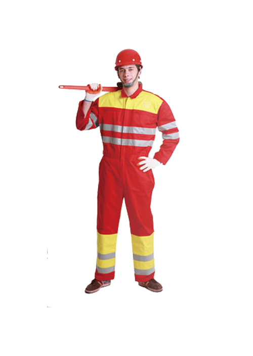 面料:100%純棉,防靜電,防油,防水,20*16,120*60,240GSM;前胸繡花標(biāo)志,前門襟樹脂拉鏈,兩個(gè)帶蓋胸兜和兩個(gè)斜插褲兜,后背臀部貼兜,腰部松緊帶,兩條5CM反光條環(huán)繞衣前后,雙臂和雙褲腿。